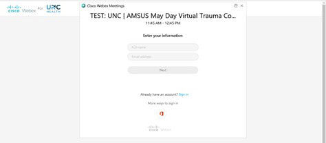 - When loaded, a third box will appear with fields to enter your name and email. Sign-on with your first, last name and the email address used in your registration.
